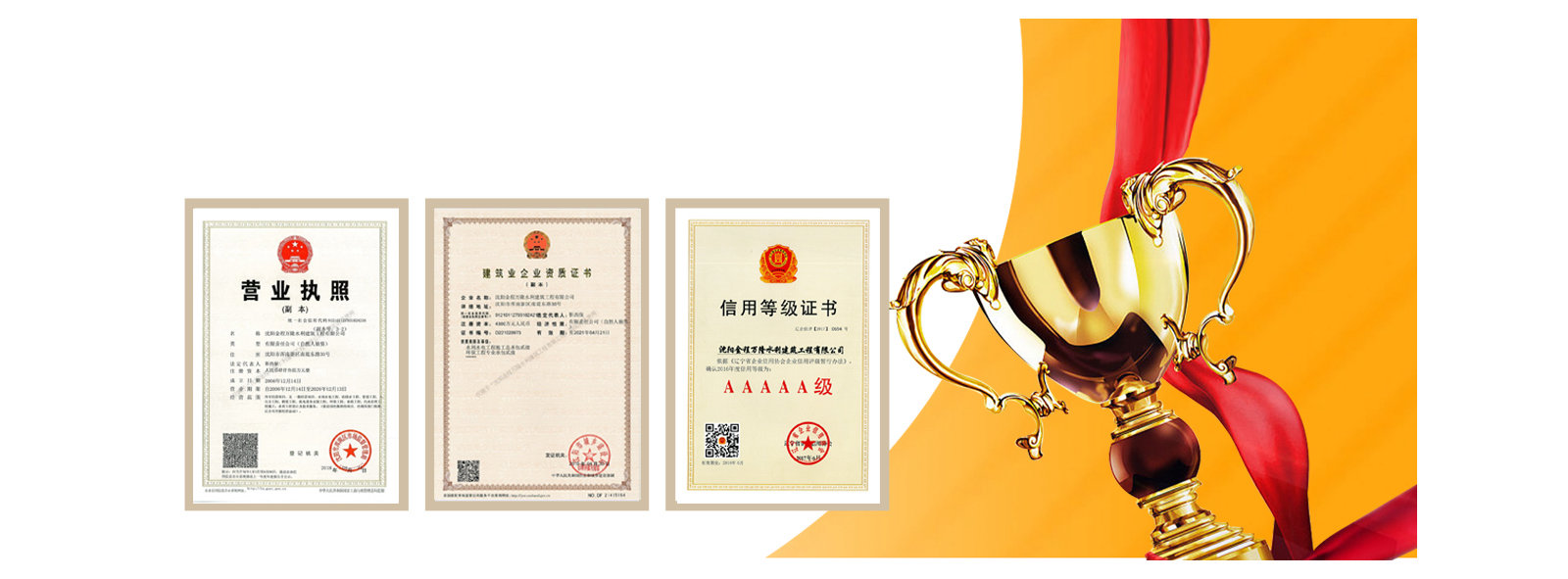 我公司沈陽金程萬隆水利建筑工程有限公司,位于沈陽市渾南新區(qū)南堤東路30號,成立于2006年12月14日,公司現(xiàn)有資質(zhì)水利水電工程施工總承包二級、環(huán)保工程專業(yè)承包二級、市政公用工程施工總承包三級、施工勞務(wù)不分等級、水利工程設(shè)計行業(yè)丙級資質(zhì)。承攬業(yè)務(wù)范圍:建設(shè)工程施工、建設(shè)工程設(shè)計、建筑勞務(wù)分包。